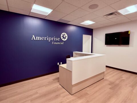 Ameriprise Fianancial has leased 2,844 square feeet of Class-A space at 105 Maxess Road, Melville. BBRC worked with Ameriprise to create a modern open office featuring clean lines and light-filled spaces. This suite also included upgraded LED lighting, a large open bullpen, windowed offices with vision panels and a kitchen.